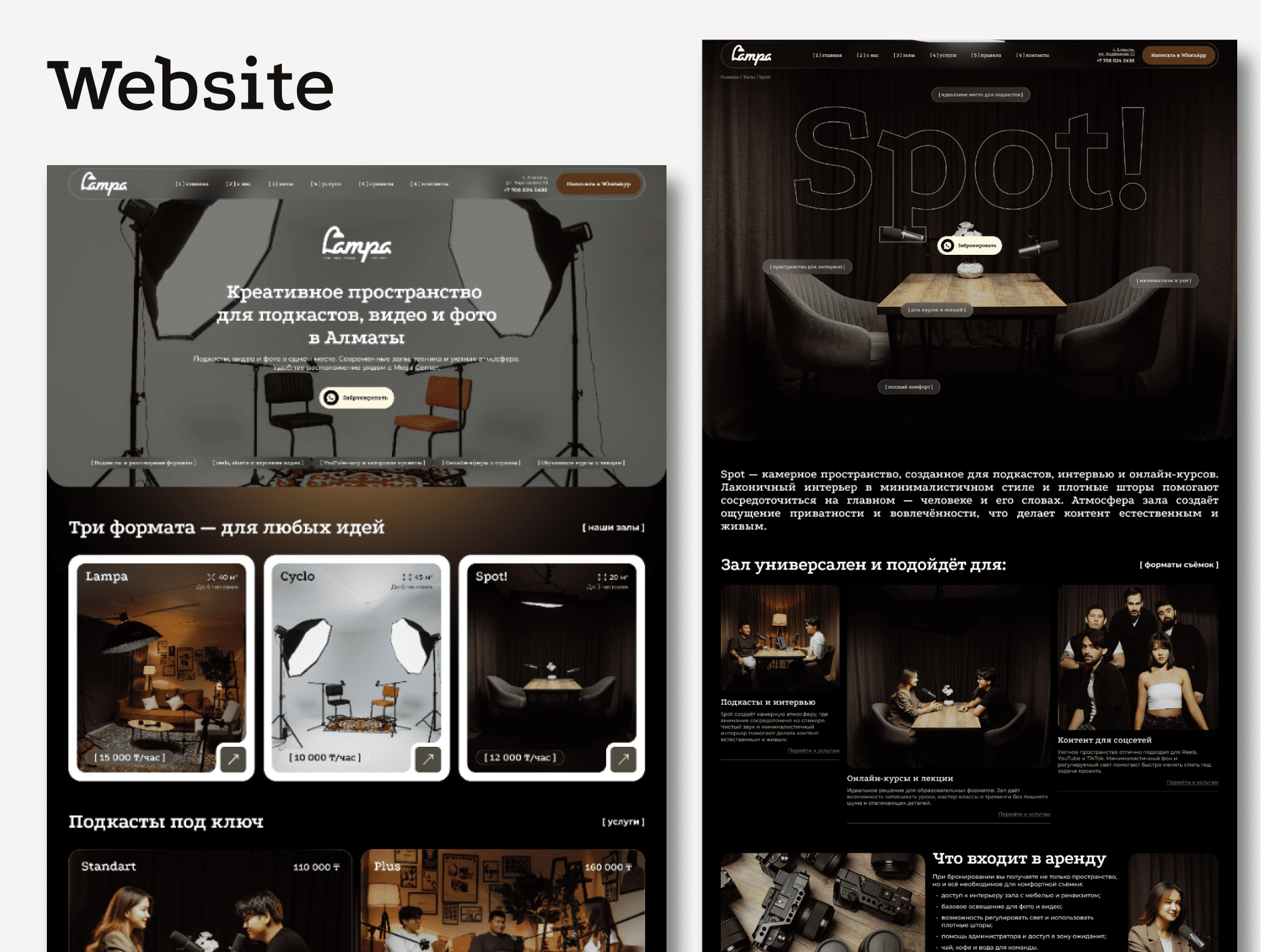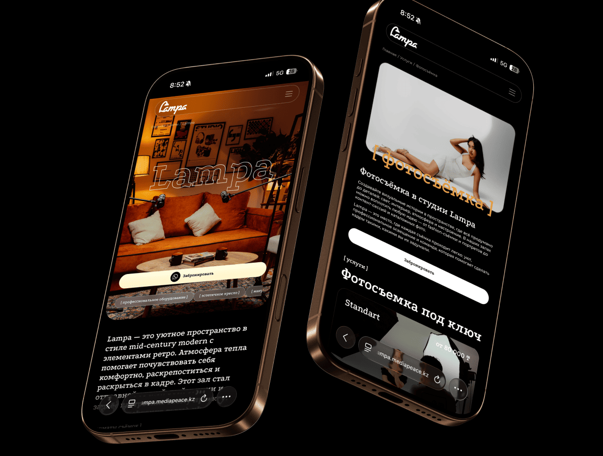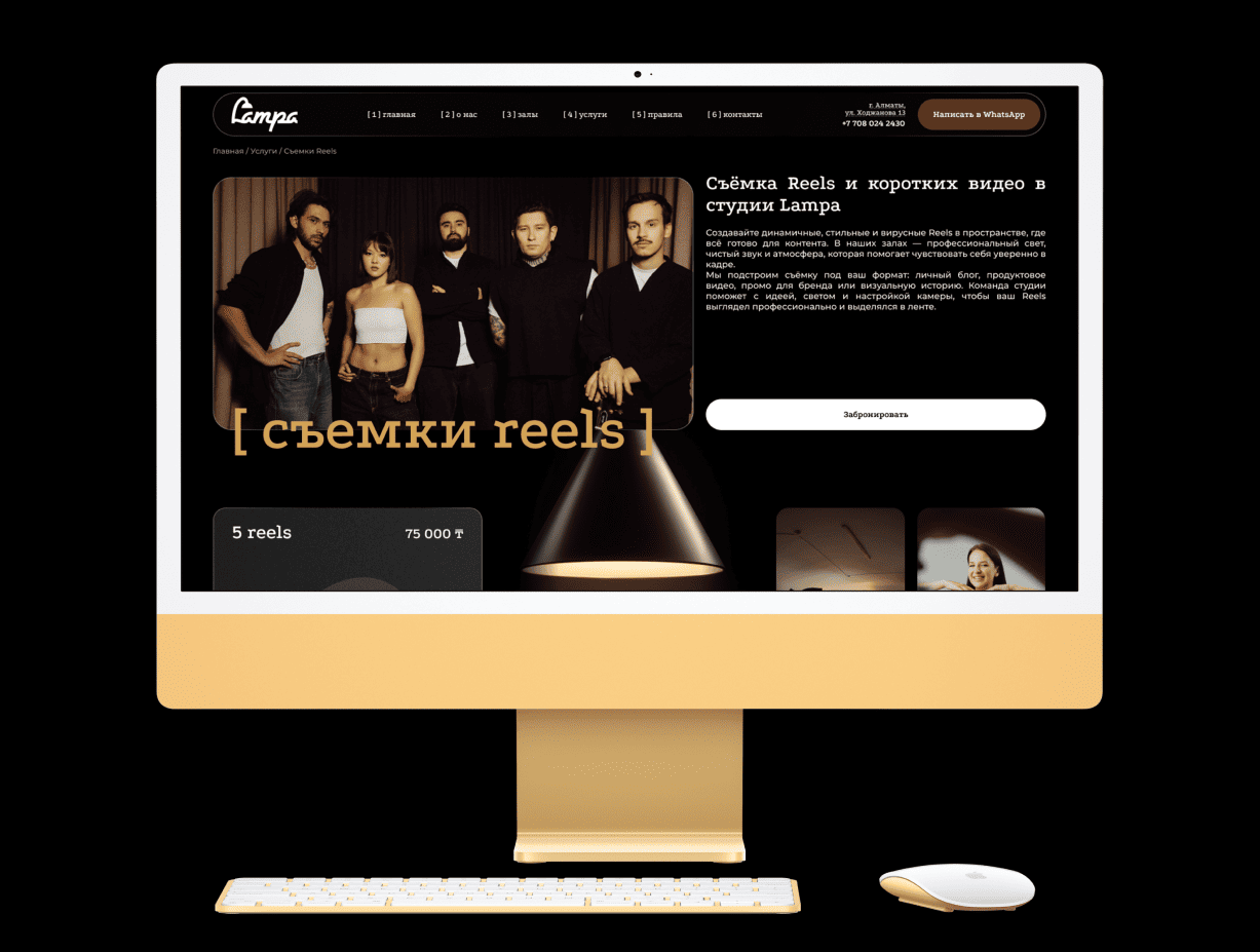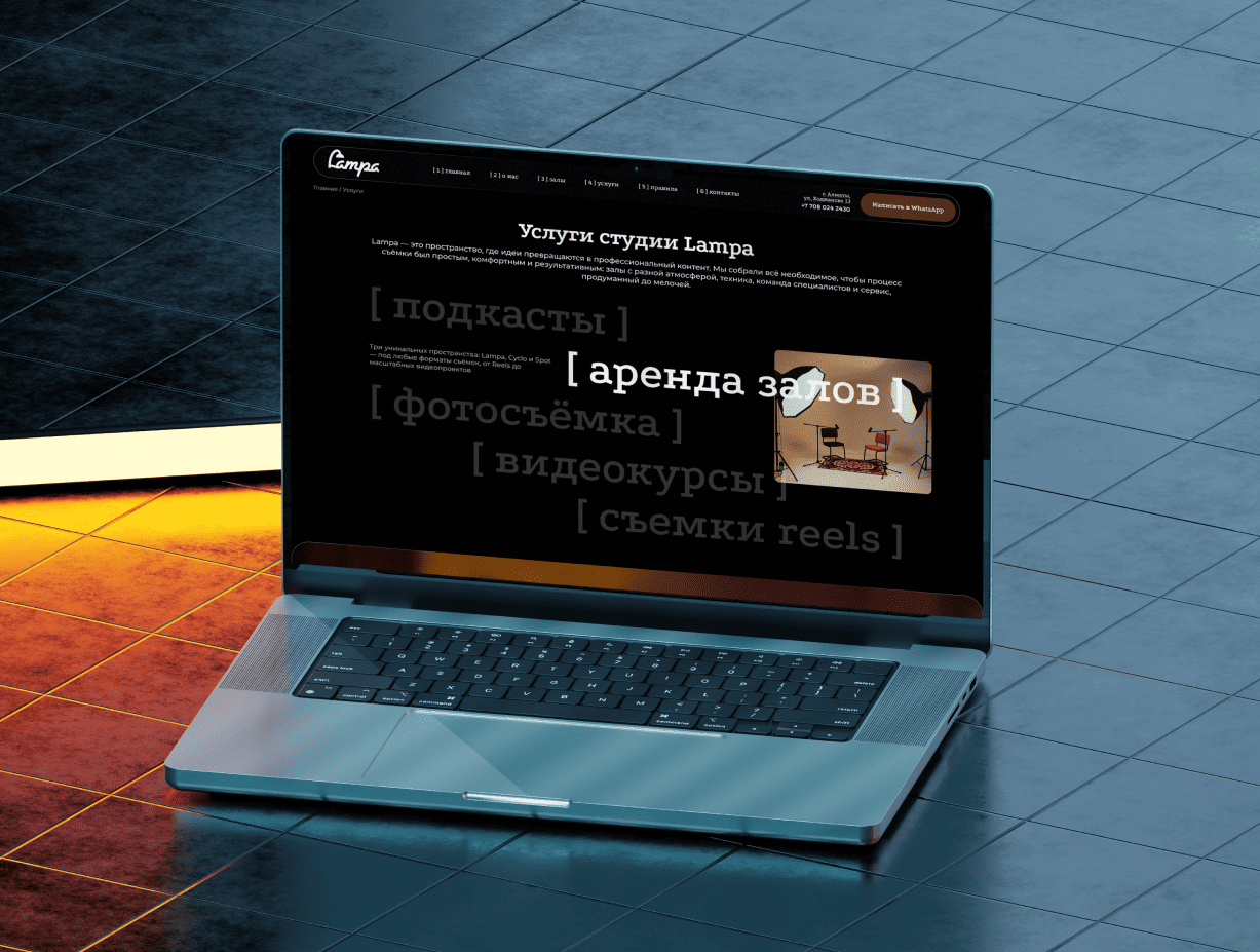 В итоге нам удалось создать проект, который стал не просто цифровой визиткой, а эффективной точкой входа для новых клиентов и ключевым каналом продаж. Сайт успешно транслирует экспертность команды и уникальность пространства, помогая бренду Lampa уверенно закрепиться на рынке. Благодаря четкому разделению услуг и залов, пользователи легко ориентируются в предложениях студии, что напрямую конвертируется в целевые запросы и бронирования.