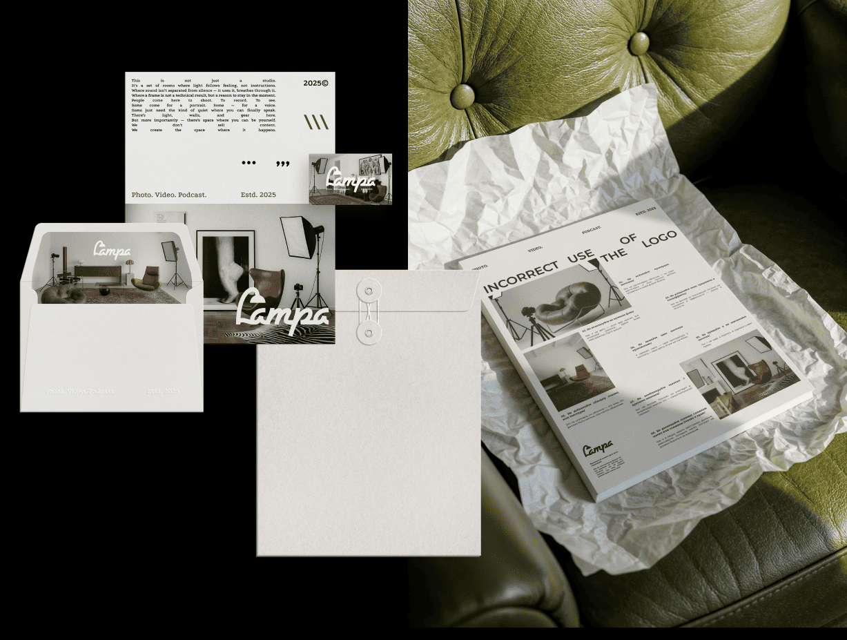 Мы вдохнули жизнь в образ Lampa, превратив пространство в бренд с узнаваемым лицом и характером. Всё началось с логотипа и айдентики, которые стали визуальным отражением этого места. Мы выстроили стиль так, чтобы каждый элемент транслировал ценности проекта и притягивал «своих» людей.